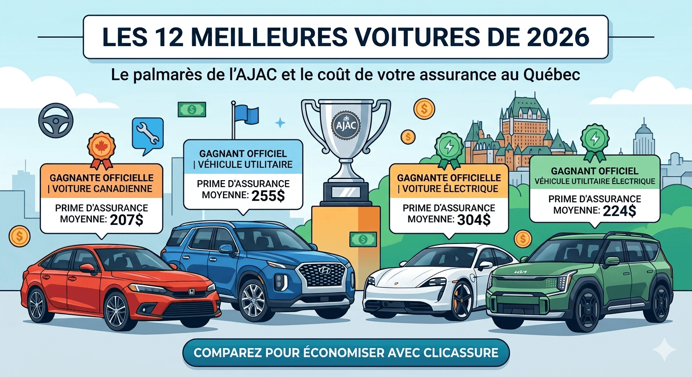 Dans cet article, nous vous présentons ces 12 modèles marquants, considéré comme étant les meilleures voitures de 2026, en y ajoutant un angle crucial pour votre budget : la prime moyenne mensuelle d’assurance auto associée à chaque modèle au Québec.